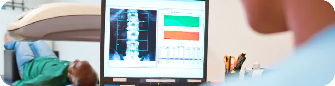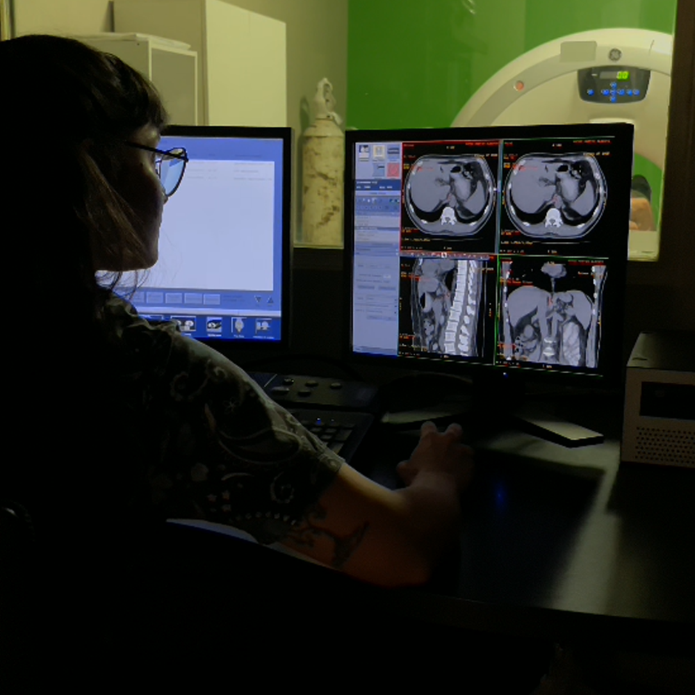 Estudio ágil y seguro que utiliza radiación en bajas dosis para obtener imágenes del interior del cuerpo, permitiendo evaluar huesos y órganos de forma clara y precisa.